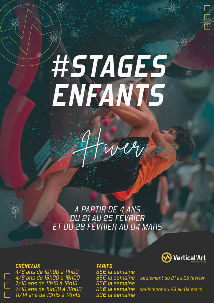 Tarifs détaillés ici : https://montigny.vertical-art.fr/tarifs/stages-vacances-anniversaires/