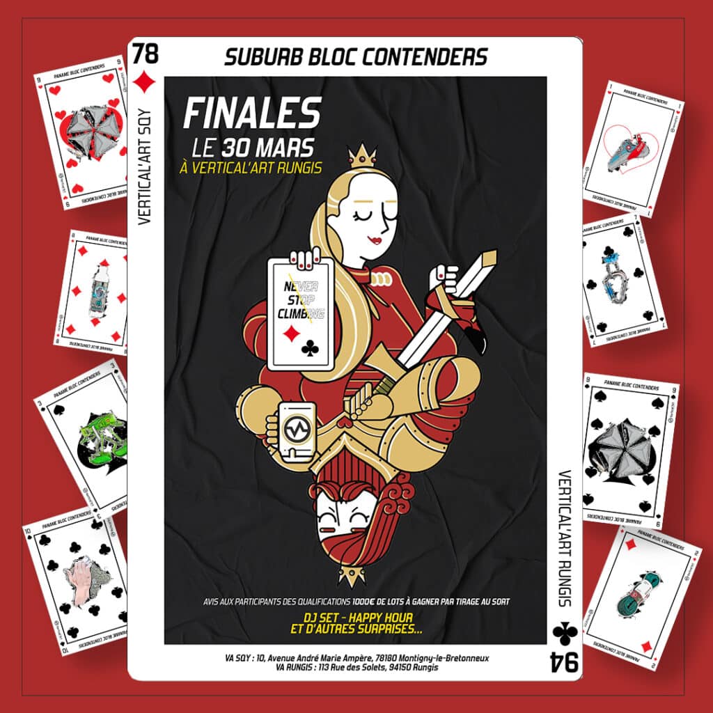 Tic tac, l’horloge tourne, les blocs tombent petit à petit, les fiches se remplissent une à une et les finales approchent à grands pas ! Il ne vous reste plus que dix jours avant la fin des qualifications du Suburb Bloc Contenders, le dimanche 24 mars. Vous n’aurez pas le temps de vous reposer qu’il sera déjà l’heure des grandes finales, le samedi 30 mars. En effet, à peine les qualifications terminées, les finalistes annoncés le lundi 25 mars se retrouveront le samedi 30 mars pour LA soirée grimpe de ce début d’année à Vertical’Art Rungis.